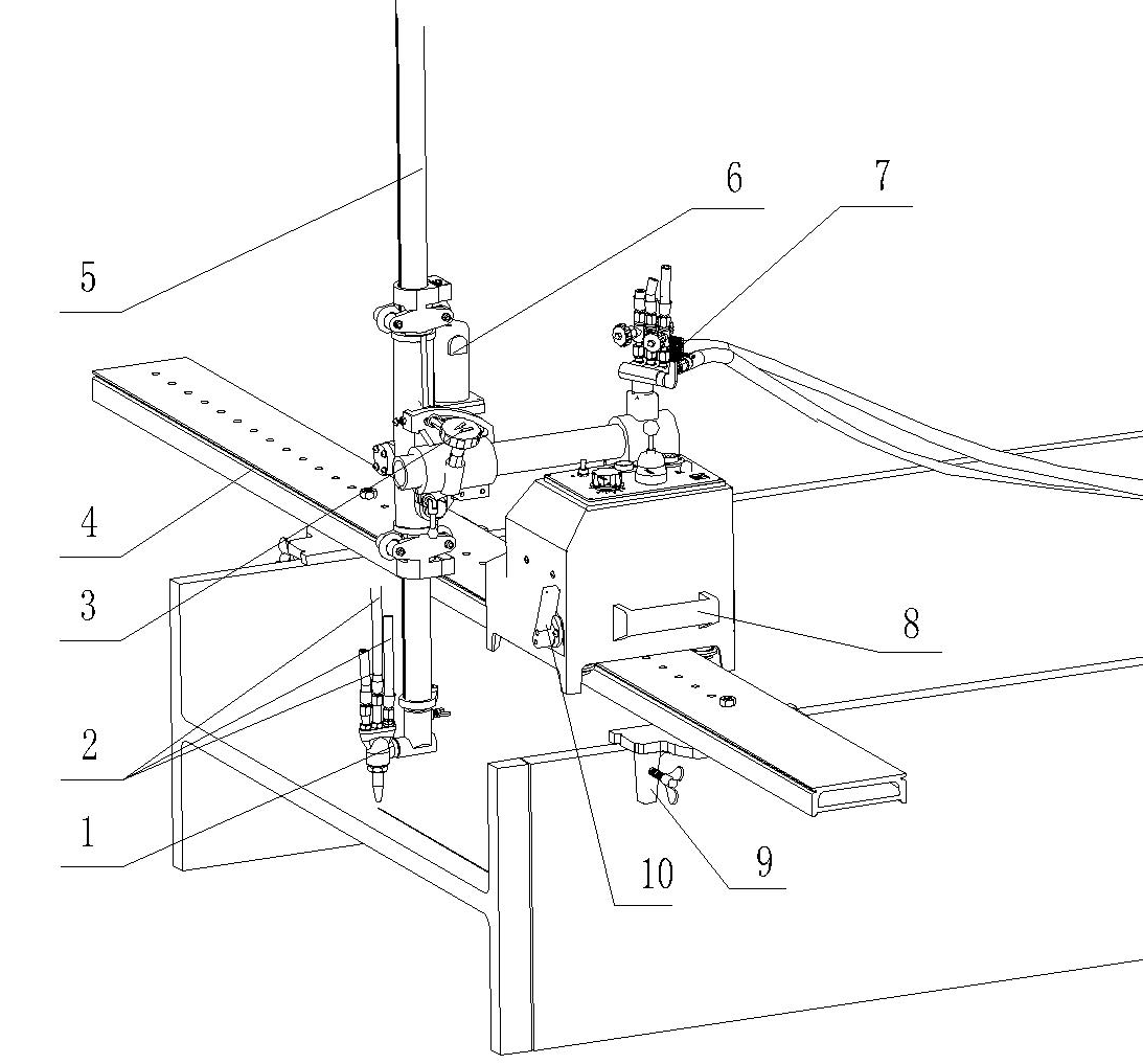 3. 橫向調節手輪:控制割炬的橫向移動 9. 軌道壓板:在H型鋼上定位機器