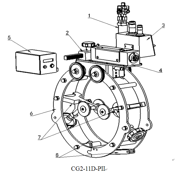 1. 割炬 2.橫移座 3.電器箱總成 4.電機總成 5.直流電池