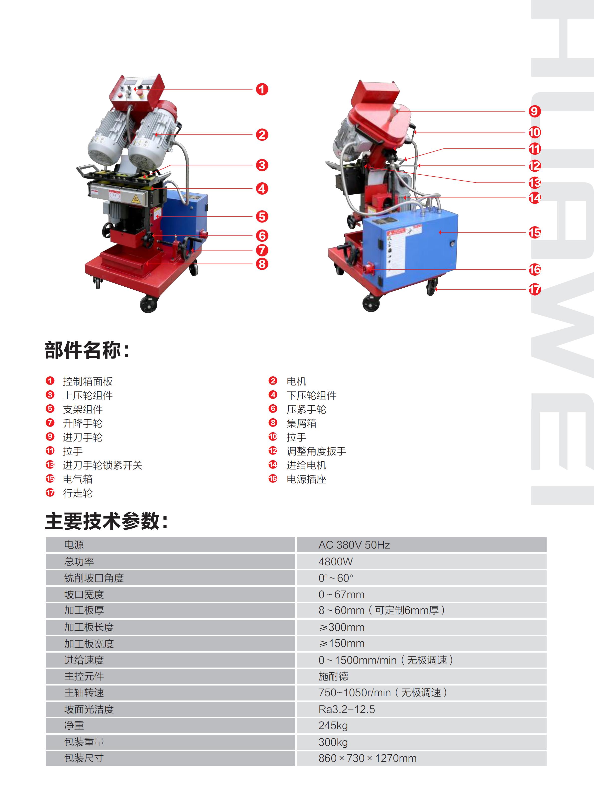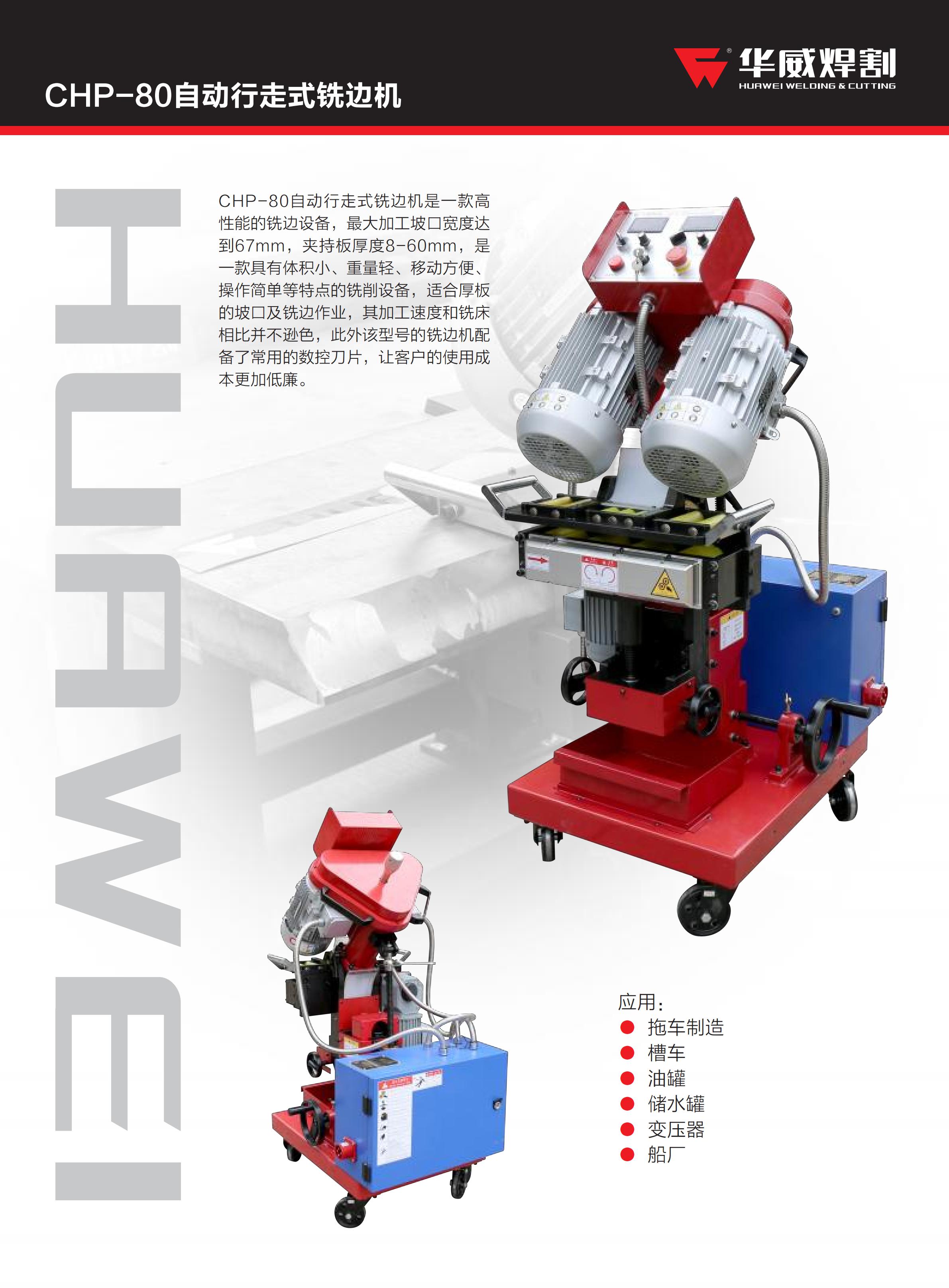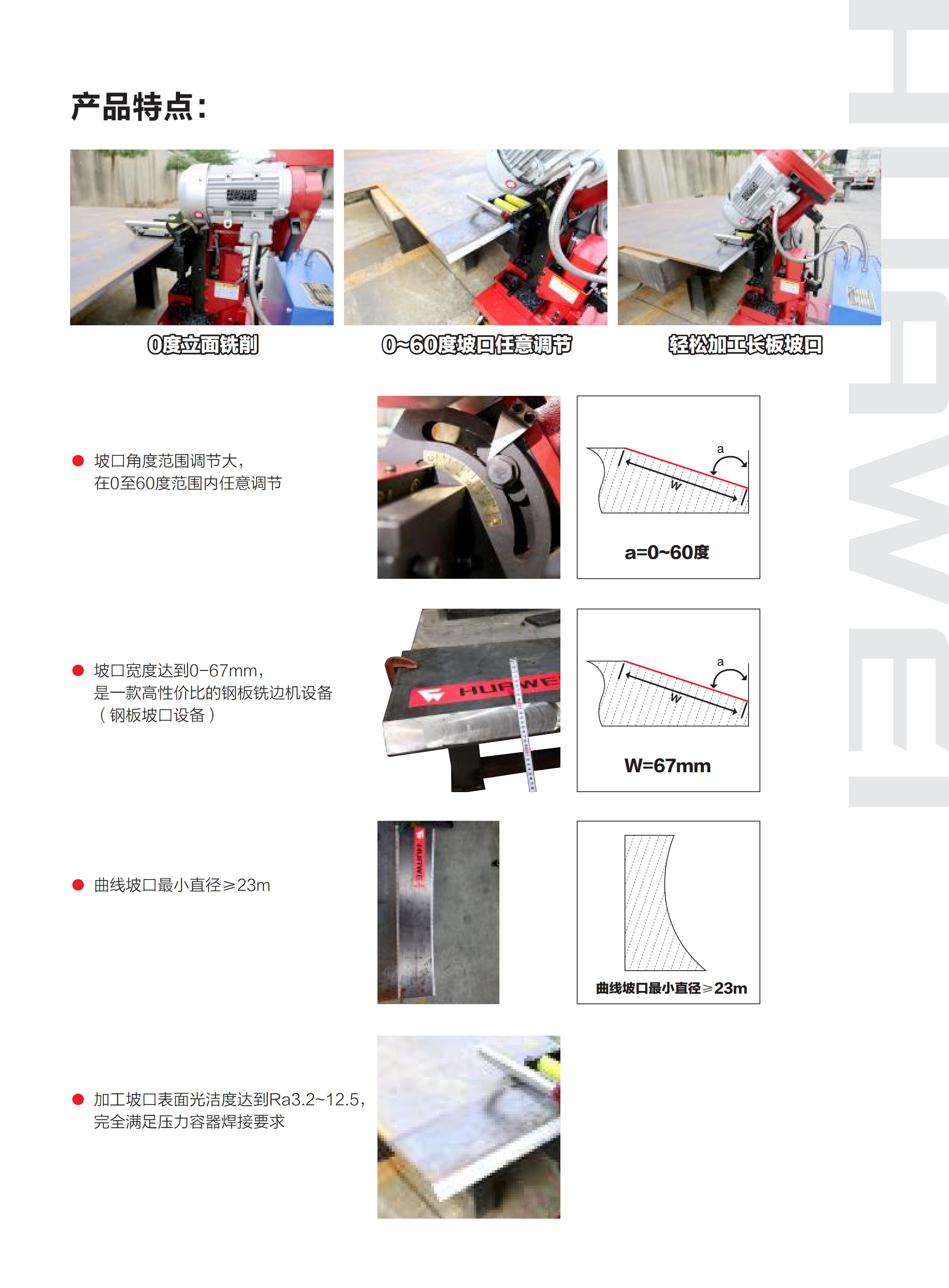 本產品是一款自動行進式銑邊設備,加工坡口過程中自動行進銑削,降低使用成本,減輕勞動強度,采用冷切削作業,加工后的坡口表面無氧化。坡口表面光潔度Ra3.2~6.3.完全符合焊接行業要求,無需去毛刺處理可以立即焊接使用,本品無污染,操作更加簡單。