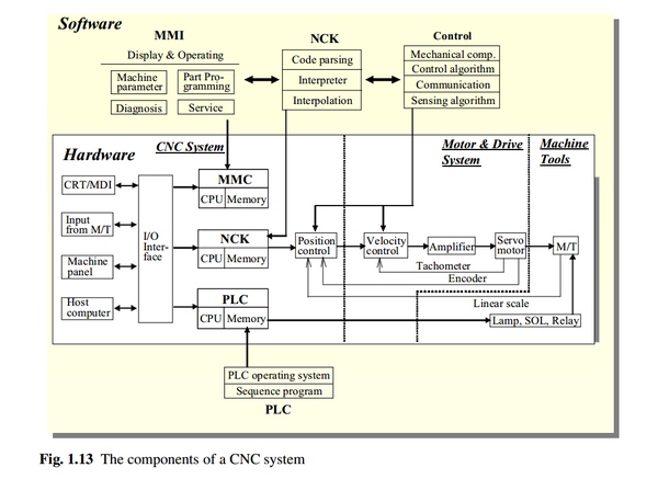 我們這里說的是CNC系統(tǒng)的概念,而不是說CNC 切割機(jī),首先看一下它的全稱,CNC:Computer numerical control,計算機(jī)數(shù)字控制,所以通常我們說的cnc一般就是指數(shù)控系統(tǒng),就是給用戶提供交互界面、實現(xiàn)位置控制的功能單元,也就是上圖所顯示的結(jié)構(gòu)。它包含三個部分,MMI(Man Machine Interface)人機(jī)交互單元,NCK( Numerical Control Kernel)數(shù)控核心單元以及 PLC (Programmable Logic Controller) 可編程控制器。NCK是CNC最核心的部分,G的代碼的解析,插補(bǔ)算法的運行實現(xiàn),都是在NCK中完成的。PLC:Programmable Logic Controller,可編程邏輯控制器。PLC在CNC中的作用,主要是控制數(shù)控切割機(jī)的割炬升降以及氣閥開關(guān),主軸變速等伺服控制所不能及的地方,起到一個輔助作用。其實PLC本身就相當(dāng)一個計算機(jī),也可以實現(xiàn)運動控制功能。但是數(shù)控數(shù)控切割機(jī)中,NCK+伺服電機(jī)能更好的完成運動控制,所以PLC一般不參與運動控制。