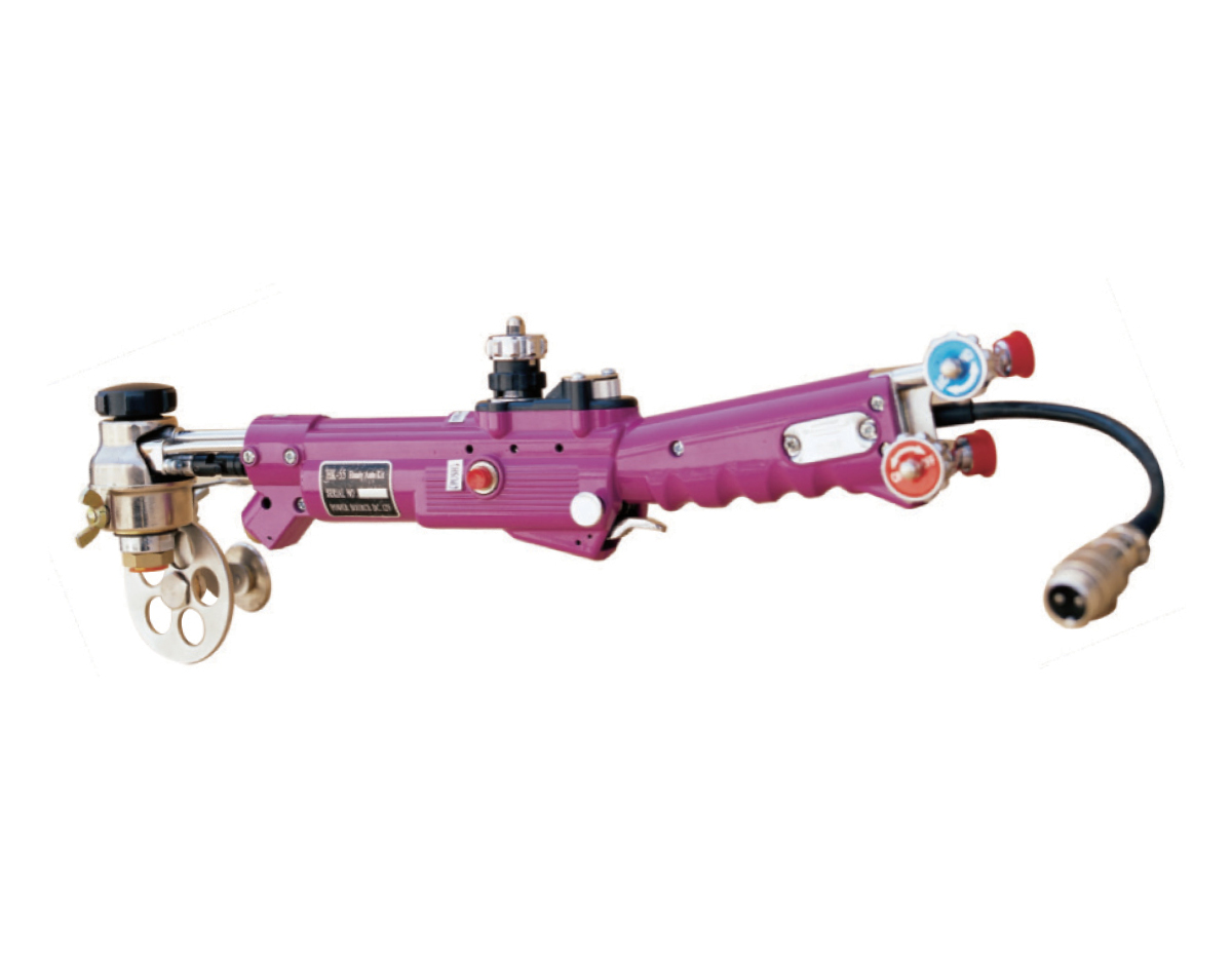 “HK-55”和”HK-55D”便攜式自動氣體切割器是基于實現便攜式切割和切割自動化的新奇設想而研發的。該裝置集各種切割型之長,可在所有工作現場使用。本機型因割嘴側的滾輪轉動而自動移動,操作人員可通過控制滾輪的方向,將鋼材切割成各種形狀。本機采用高強度鋁錠材料,精密壓鑄而成,結構緊湊、經久耐用、體積小攜帶方便,使用靈活,可實現各種場合的手工切割。行走采用直流伺服電機驅動,運行平穩,切割質量穩定。更換附件可進行不同角度坡口、曲線及圓周切割等。HK-55D機身上帶有自動點火裝置,操作簡單。本機型適用與造船、石油、冶金、金屬結構等工廠,操作簡單易學,即使是初學者也可較為容易進行鋼材切割。