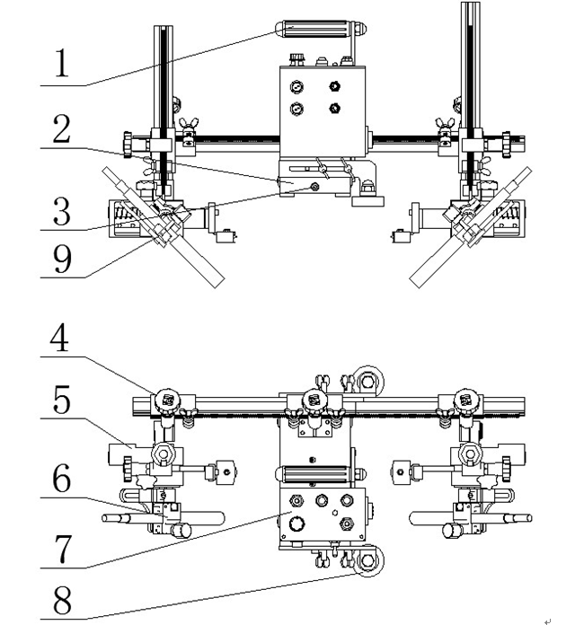 6) 角度微調(diào)裝置:用此裝置可準(zhǔn)確引導(dǎo)焊槍對準(zhǔn)焊接部位。