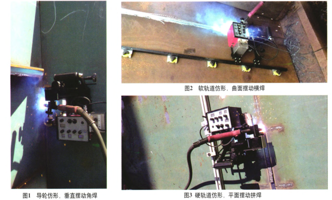 根據(jù)客戶要求及我們對(duì)船廠現(xiàn)場(chǎng)的實(shí)地考察,作出了如下改進(jìn):(1)一機(jī)多用要實(shí)現(xiàn)客戶的一機(jī)多用要求,需對(duì)設(shè)備的自重、吸附力及仿形能力作相應(yīng)的設(shè)計(jì)改進(jìn)。第一,對(duì)設(shè)備行走模塊進(jìn)行了重新設(shè)計(jì)以減輕自重。①車體材料為壓鑄鋁合金,結(jié)構(gòu)上采用薄壁加強(qiáng)肋設(shè)計(jì),模具化生產(chǎn),輕便耐用。⑦車體重心重新進(jìn)行了優(yōu)化布局,減少外力力矩。第二,吸附裝置采用了永磁吸附方式。①選用高性能永磁材料。②采用軟磁磁軛,使高性能磁體工作于最大磁能積工作點(diǎn),減少吸附裝置自重的同時(shí)極大地提升設(shè)備的吸附力。第三,采用導(dǎo)輪結(jié)合軟、硬軌道的綜合仿形方式。使設(shè)備能很好地適應(yīng)平直及帶曲率焊道的焊接。具體焊接實(shí)現(xiàn)如圖l一圖3所示。(2)整機(jī)4 000h的使用壽命 設(shè)備各模塊中對(duì)壽命影響最大的是焊接擺動(dòng)器,而我公司常規(guī)的擺動(dòng)功能模塊主要有:①基于有刷電動(dòng)機(jī)的焊接擺動(dòng)器。其特點(diǎn)是控制線路簡(jiǎn)單、價(jià)格便宜,但其存在控制精度低且壽命短,額定使用壽命只有2 000h,期間需更換擺動(dòng)電動(dòng)機(jī)以延長(zhǎng)使用壽命。②基于BLDC電動(dòng)機(jī)的焊接擺動(dòng)器。其特點(diǎn)是控制線路較復(fù)雜、控制精度較高、使用壽命長(zhǎng)(理論壽命可達(dá)10 000h以上),但其存在無法實(shí)現(xiàn)運(yùn)動(dòng)的絕對(duì)坐標(biāo)控制。③基于伺服電動(dòng)機(jī)的焊接擺動(dòng)器。其特點(diǎn)是使用.廳命長(zhǎng)、控制flj度j;‘j兒¨J‘吱現(xiàn)運(yùn)動(dòng)的絕對(duì)坐標(biāo)控制,但其存在價(jià)格高昂、控制線路復(fù)雜的缺點(diǎn)。綜合考慮效率質(zhì)量、弱化焊工技能的要求,且本案例中不需進(jìn)行運(yùn)動(dòng)的絕對(duì)坐標(biāo)控制,決定選用基于B LDC電動(dòng)機(jī)的鐘擺焊接擺動(dòng)器模塊。